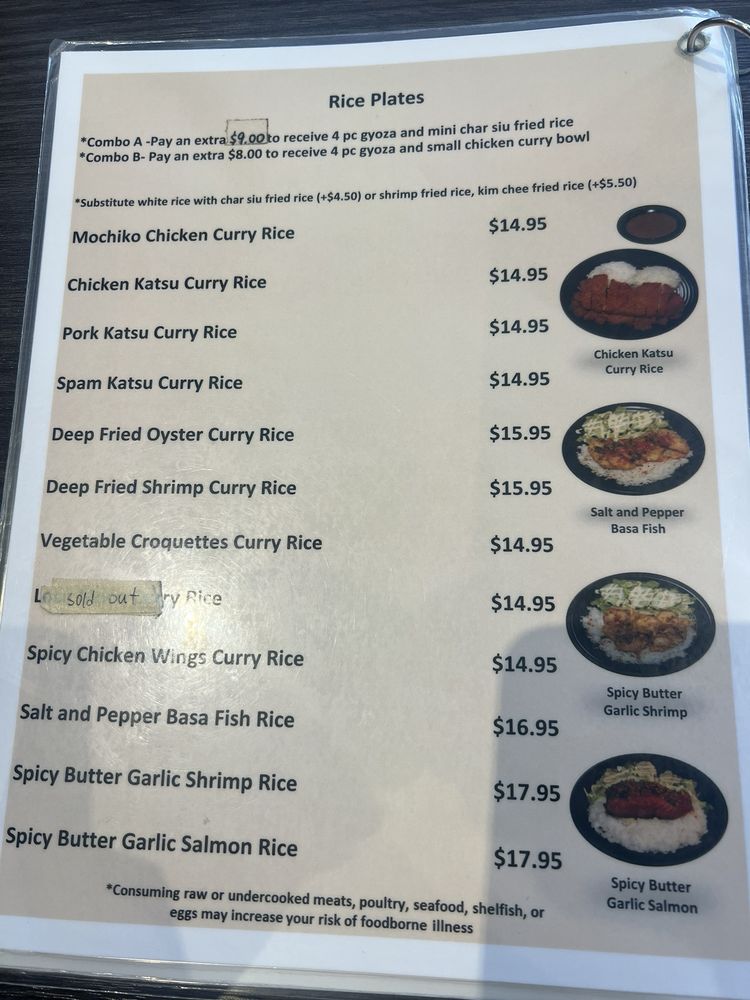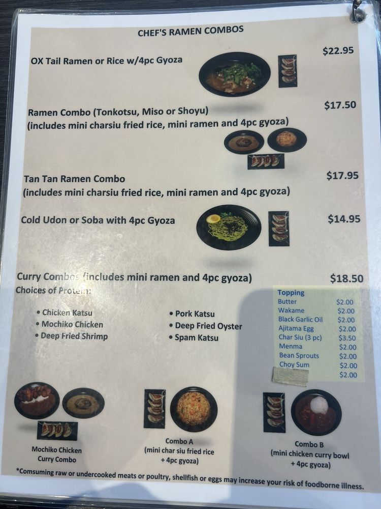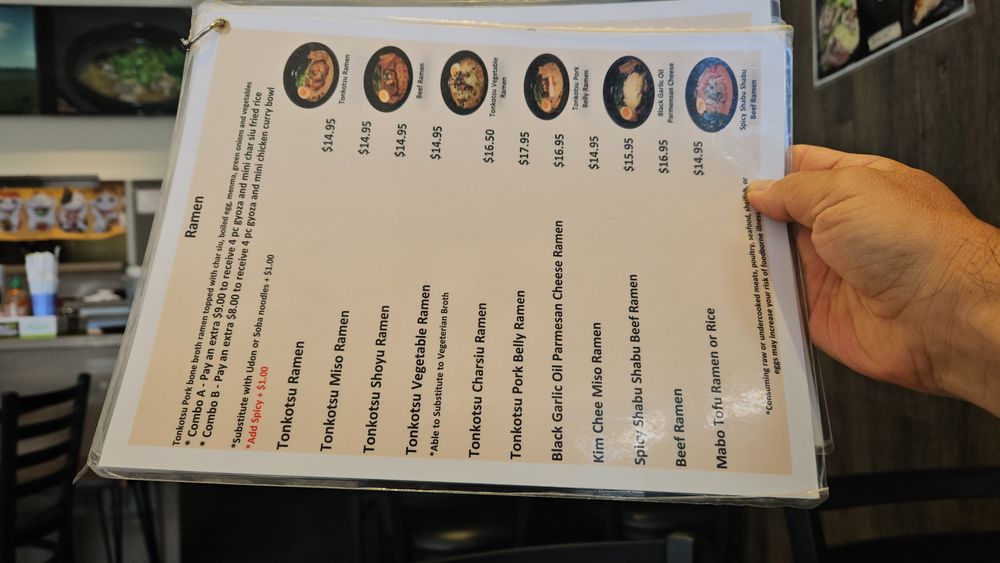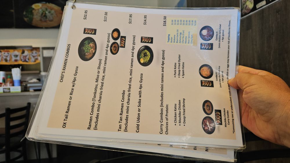 The menu also features enticing yakisoba options and unique combo meals like the Chicken Katsu Curry Combo, which perfectly marries ramen and sides for a satisfying experience.